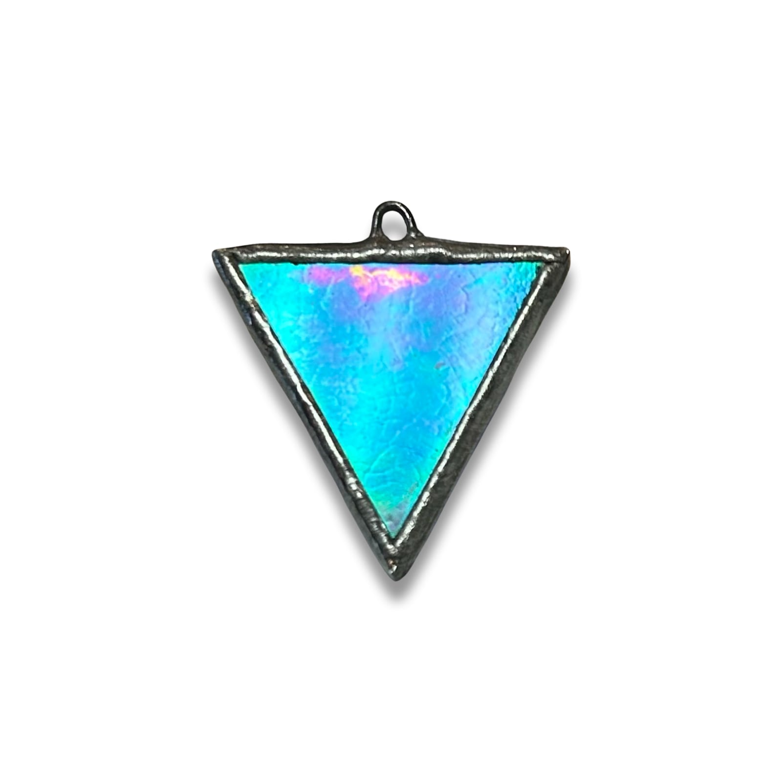 角度によって色が変わるイリデセリント加工が施されたガラスを使用。